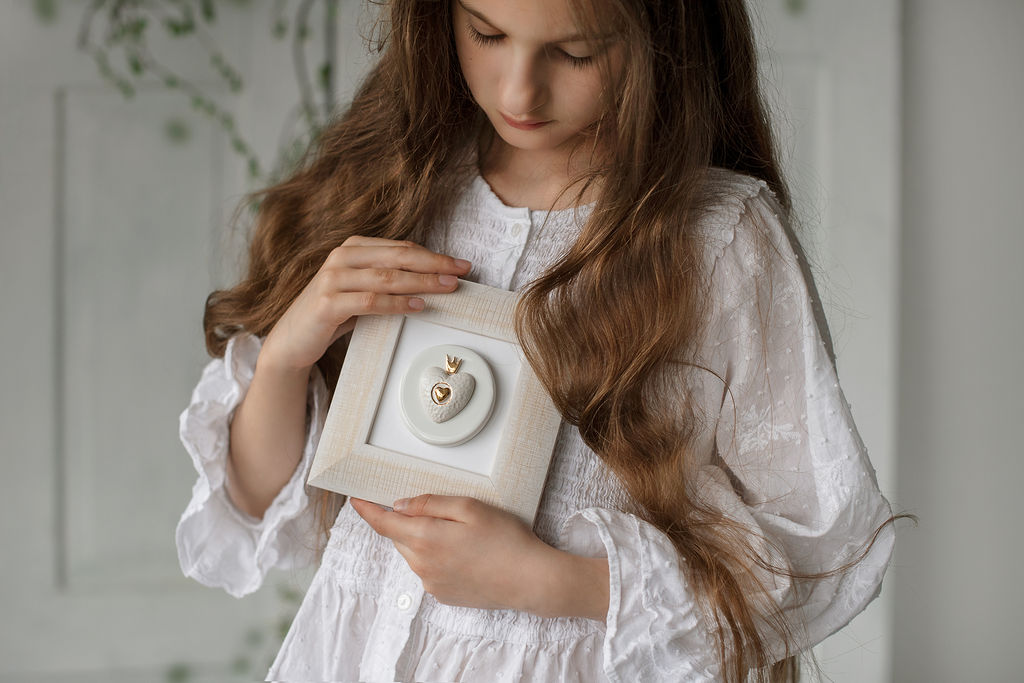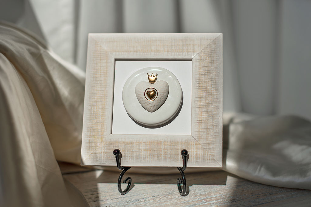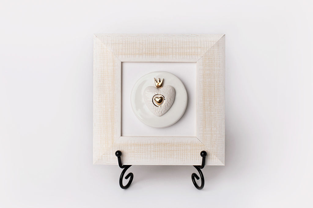 Paveikslas su rankų darbo keramine širdele rėmelyje (M9)