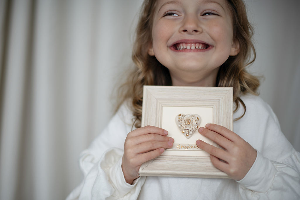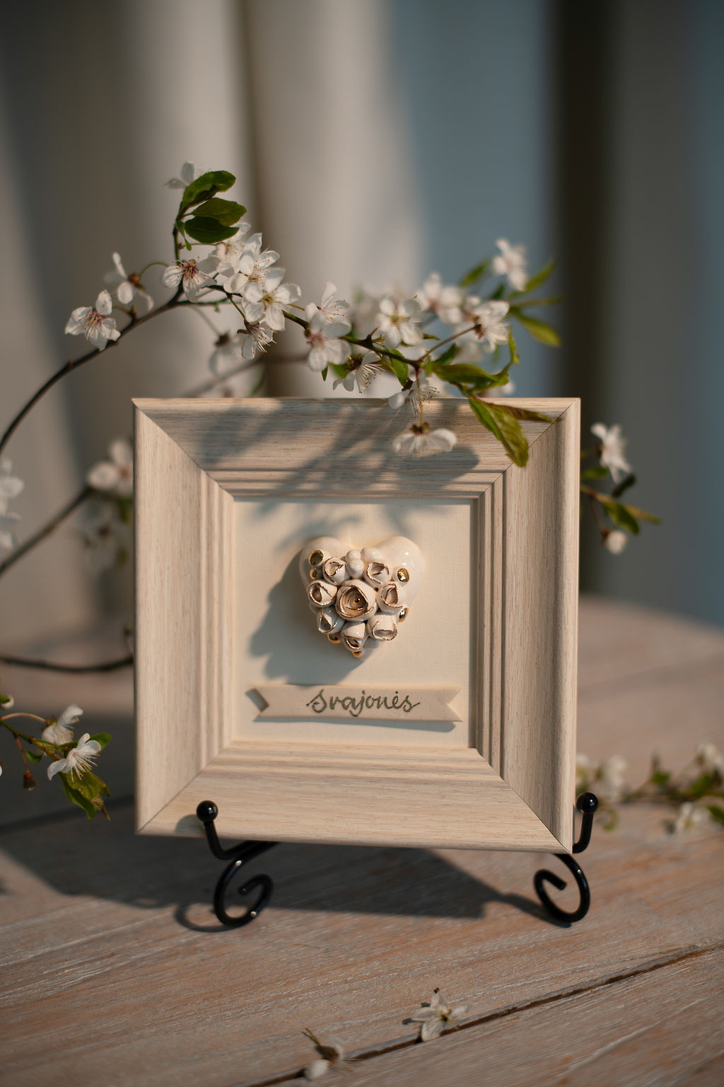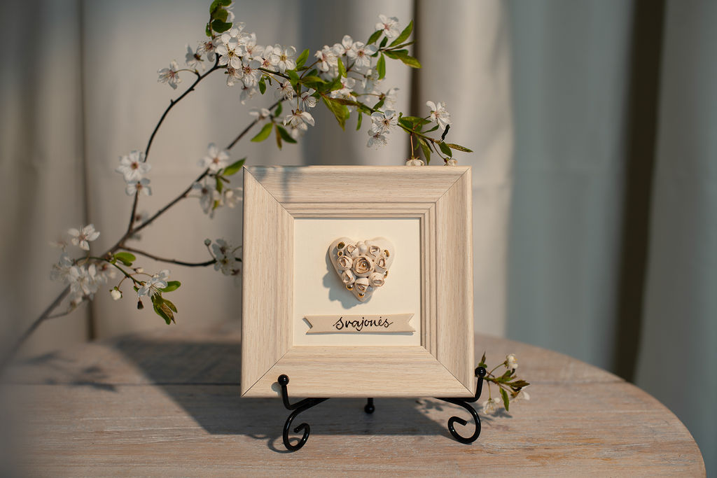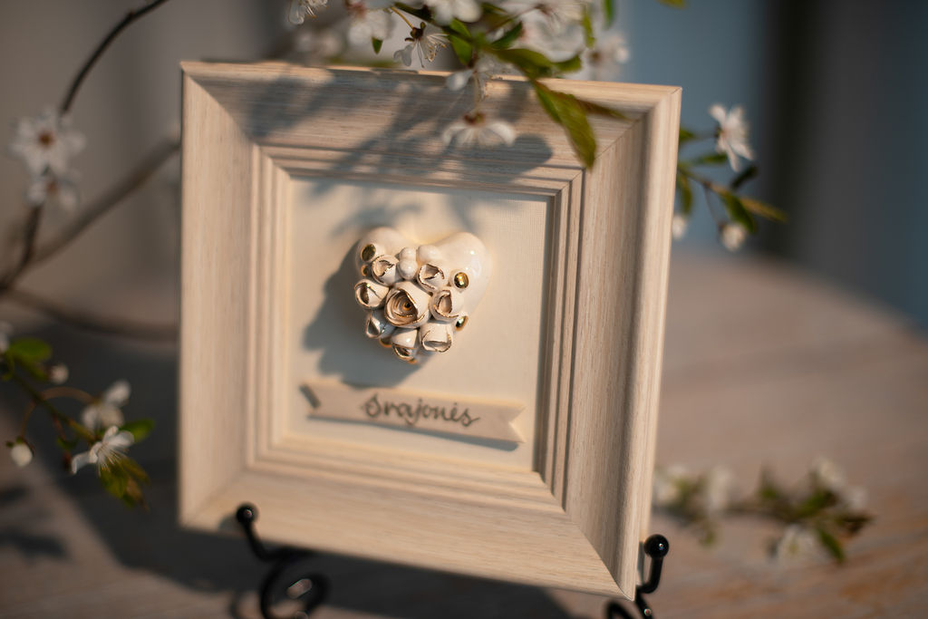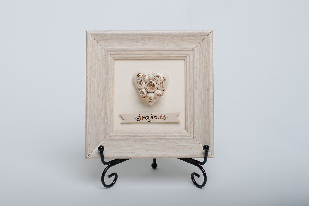 Paveikslas su rankų darbo keramine širdele rėmelyje (M1)