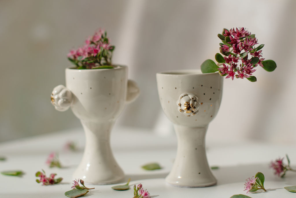 Keraminės rankų darbo sutikimo taurelės – gražaus ritualo įgyvendinimui. Yra lietuviški papročiai, kai po santuokos ceremonijos jaunavedžius pasitinka tėvai su duona, druska ir vandeniu. Duona simbolizuoja sotumą ir prieglobstį, o druska – gyvenimo prieskonis, be kurio neapsieina jokie namai, na o vanduo – gyvybę. Rankų darbo keraminės sutikimo taurelės ne tik papuoš sutiktuves, bet ir liks kaip gražus prisiminimas (beje, vėliau taurelės gali būti naudojamos kaip kiaušinio indelis).